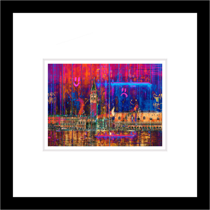 Der Pigmentdruck auf FineArt-Papier steht für maximale Farbtreue, außergewöhnliche Haltbarkeit und eine Präsentation, wie sie von Museen und Sammlern geschätzt wird. Vollendet wird das Kunstwerk durch einen mattschwarzen Galerierahmen mit tiefem, edlem Passepartout.